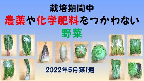 2022年5月第1週に地元の生産者さんから購入させていただいた、農薬や化学肥料を使わないで育てられた野菜を紹介いたします。 また、入手した野菜の一部を利用して栽培中の再生野菜の状況についてもお伝えします。